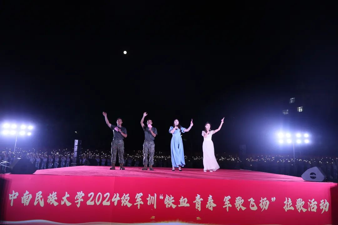 隨著活動的深入,全體人員齊唱《我和我的祖國》,將這份對祖國的深情厚誼化作最真摯的祝福。在那一刻,軍歌的嘹亮與青春的熱血交織在一起,共同譜寫著屬于中南民族大學的華彩篇章。
