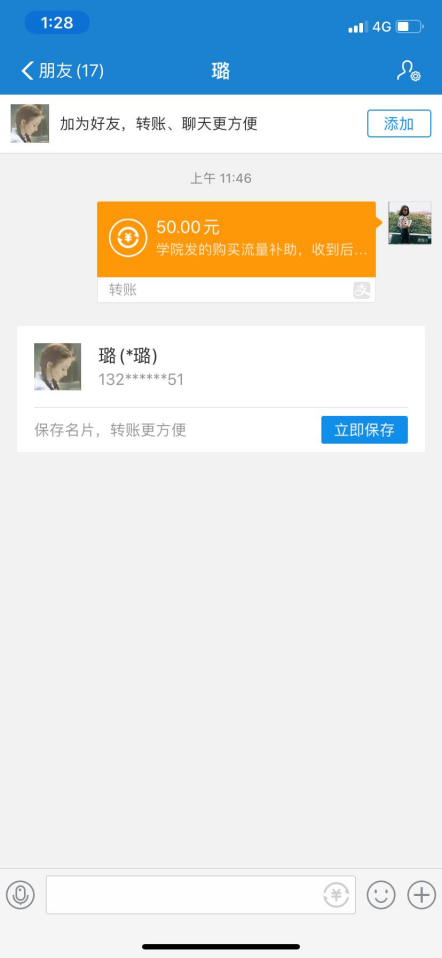 學(xué)院發(fā)放流量補(bǔ)助的過程。 學(xué)院通過線上通知,自主申請,了解實(shí)情等方式,在全院范圍內(nèi)一共確定了33名補(bǔ)助對象,并通過各年級輔導(dǎo)員以支付寶、微信等形式給予這33名同學(xué)每人50元的定向流量補(bǔ)貼。