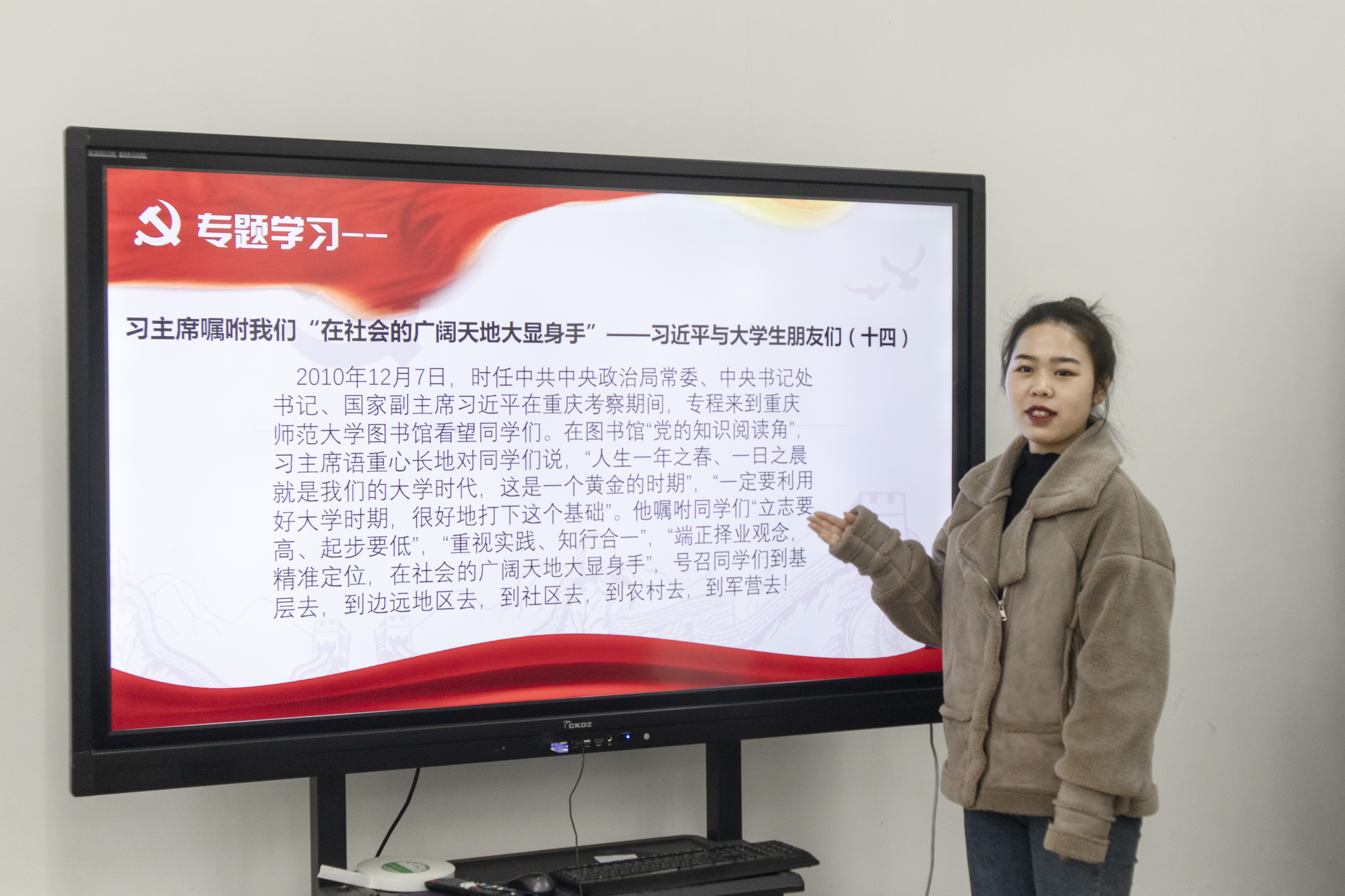 為進一步深化我院全體團委學生會成員對習近平總書記給當代大學生寄語的認識。2020年12月13日上午10:00,我院于九棟122教室開展了《習近平與大學生朋友們》研讀學習活動,活動分為書本研讀和感悟分享兩個部分。我院團委學生會全體成員參加本次活動,本次會議由主席團成員劉姍主持。
