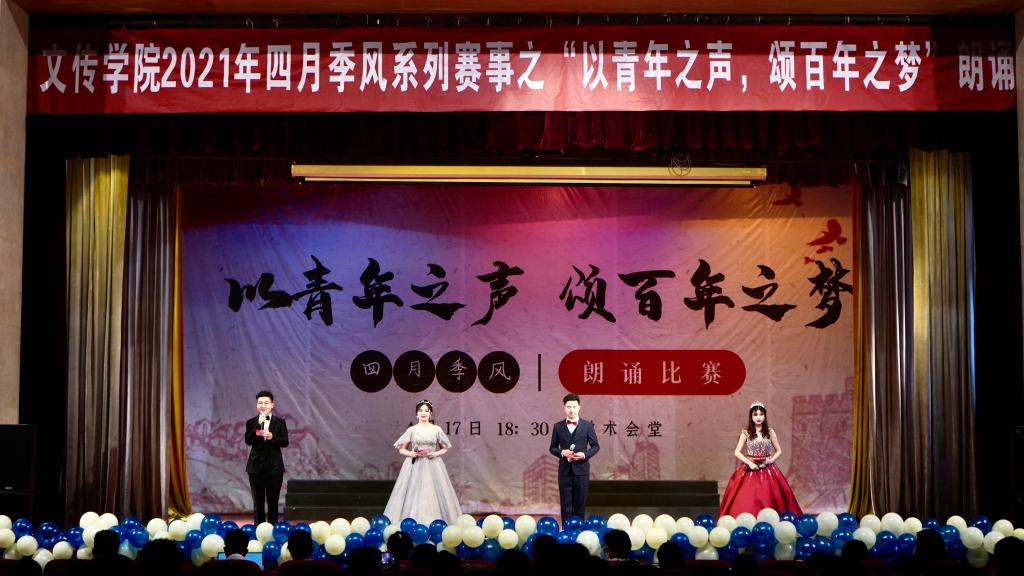 “以青年之聲 頌百年之夢”朗誦大賽于2021年4月17日在學術會堂舉行,文學與新聞傳播學院2020級16個班級全員積極參與,歌頌黨的光輝歷程,獻禮黨的百年偉夢。其中文學2001班將青春與祖國緊密聯系在一起,在朗誦中展現了青年人的責任與擔當,“一代人有一代人的長征,一代人有一代人的的擔當”,與時代同呼吸,與國家共命運,誓將最美好的青春歲月獻給祖國,為實現中華民族偉大復興貢獻自己的力量。他們用抑揚頓挫、滿含真情的朗誦表達他們的思想與情感,打動了許多觀眾,獲得了本次朗誦大賽的一等獎。