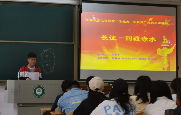 彭根年團隊在給生醫2007和2008團支部宣講了紅軍長征途中的四渡赤水事件,帶領團支部成員回顧了紅軍采取高度機動的運動戰方針,縱橫馳騁于川黔滇邊境廣大地區,積極尋找戰機,有效地調動和殲滅敵人的經歷,展現了毛主席高超的軍事思想和戰略思維,呼吁大家走好新時代的長征路,做勇擔重任的時代新人。