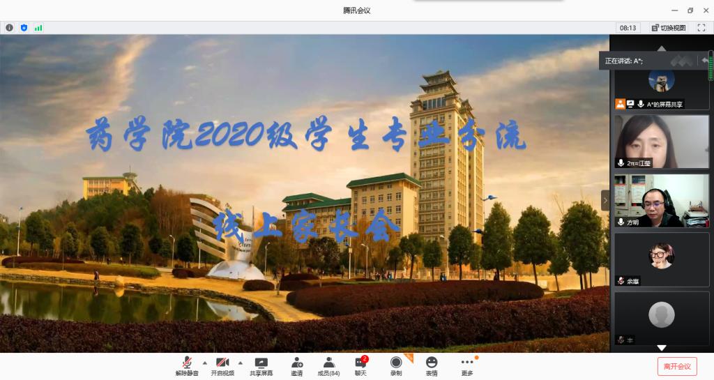 為進一步落實落細(xì)“三全育人”,積極推進家校協(xié)同機制,服務(wù)學(xué)生成長成才,4月23日,藥學(xué)院通過騰訊會議召開2020級學(xué)生家長會。院黨委書記江瑩、副書記方明、副院長尹世金參會,會議由2020級輔導(dǎo)員艾克拜爾主持。