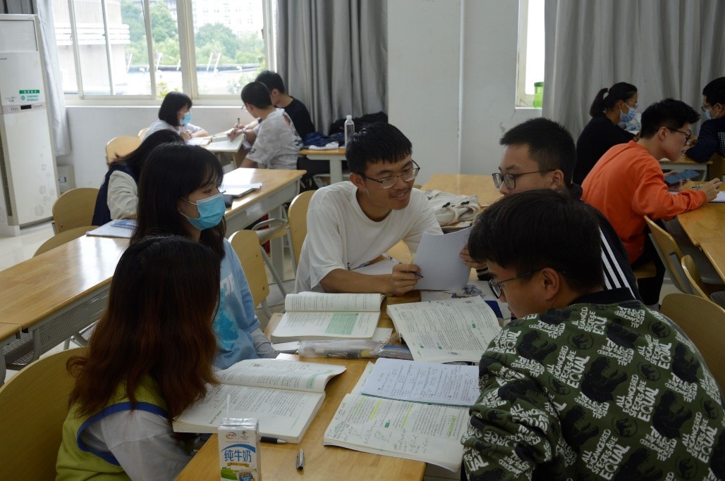 活動以一對多形式為20級學生進行大學物理C、有機化學、高等數學3門課程的授課。教學現場氣氛融洽,19級學生作為授課老師為20級學生進行系統地知識授課,并對存在疑問的知識點進行點對點答疑,現場討論聲此起彼伏。