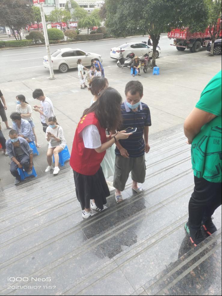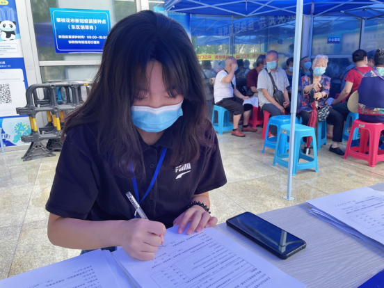來自外語學(xué)院19級(jí)的學(xué)生盛慧,暑假期間,在家鄉(xiāng)當(dāng)?shù)爻蔀榱艘幻咔榉揽刂驹刚?,主要?fù)責(zé)在醫(yī)院門診為來院人員測量體溫,核查健康碼以及行程,引導(dǎo)患者就醫(yī),為核酸檢測報(bào)告蓋章,對來院人員新冠疫苗應(yīng)接未接的人員信息進(jìn)行登記并上報(bào)等等。在做志愿者的這段時(shí)間里,她體會(huì)到了醫(yī)護(hù)人員工作的艱辛、責(zé)任和壓力,下定決心要為抗疫奉獻(xiàn)出自己的一份力量。