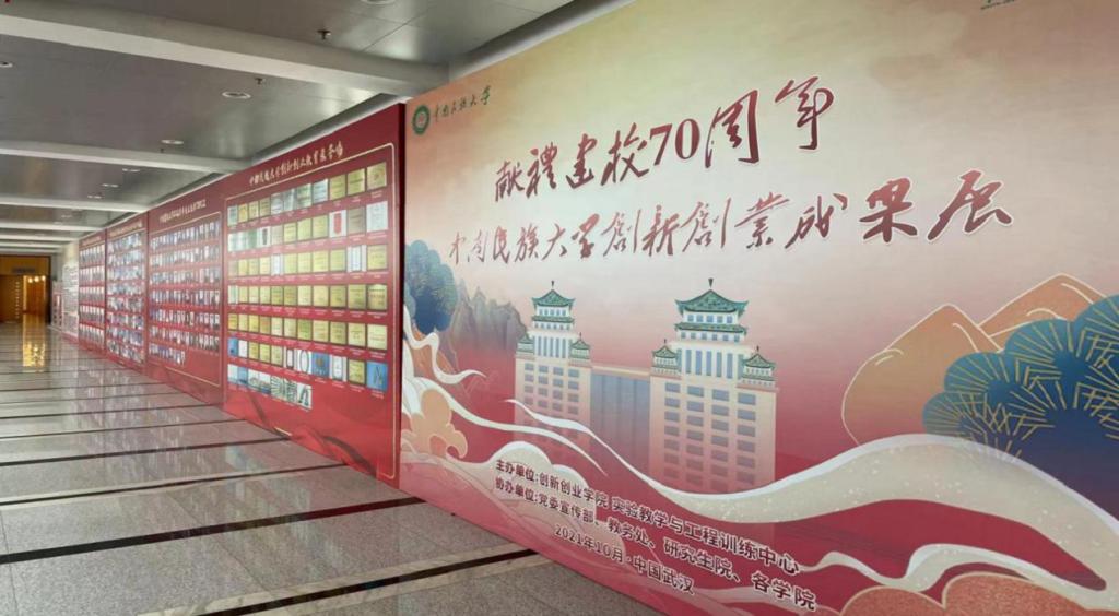 在全校上下隆重紀念我校建校70周年的喜慶時刻,11月4日中午,公共管理學院2021級的部分學生在輔導員馬琳琳老師的帶領下,于學術交流中心二樓大廳集體參觀了 “獻禮建校70周年中南民族大學創新創業成果展”。
