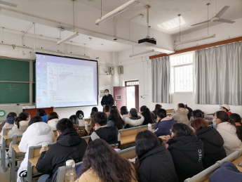 圖為統(tǒng)計(jì)1901班班導(dǎo)師葉小青在進(jìn)行班會(huì)總結(jié) 馬紫晨 攝