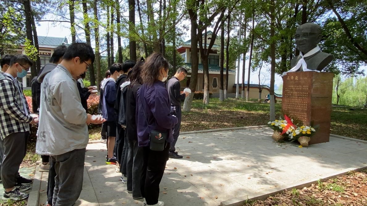 手捧親手制作的小白花,師生一道步行來到民族學博物館前的吳澤霖先生的雕像前。全體成員首先向吳澤霖先生雕像低頭默哀、三鞠躬,隨后兩位同學為大家介紹了吳澤霖先生的生平與育人故事,黃老師補充介紹了吳澤霖先生的感人事跡,特別介紹了吳澤霖獎學金的設立和評選基本條件。這不僅讓同學們更加深入的了解了吳澤霖先生和學校的歷史,更激發了同學們感恩與拼搏的心!隨后,師生們有序上前向吳澤霖雕像敬獻了親手制作的小白花。