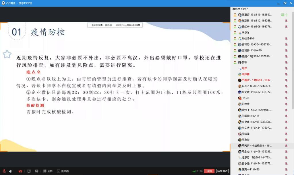 信息1902班舉行線上班會。 賈星語 攝