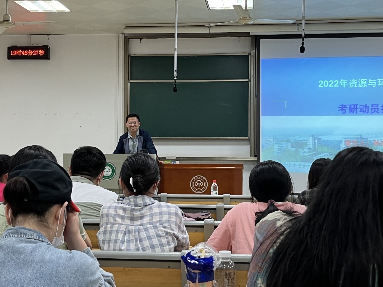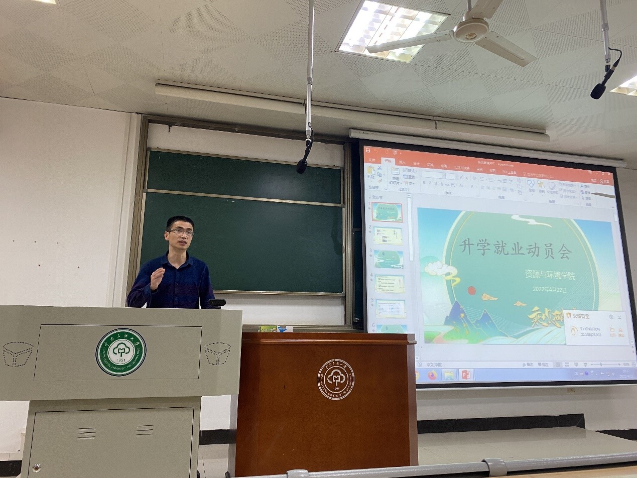 4月22日晚,資源與環境科學學院召開了升學就業動員大會,為19級同學了解考研、激發考研動力和分析就業形勢、傳授就業方法技巧。孫杰院長、呂康樂副院長、黃本金副書記、輔導員石麗老師出席以及三位優秀的學長學姐分享學習經驗。