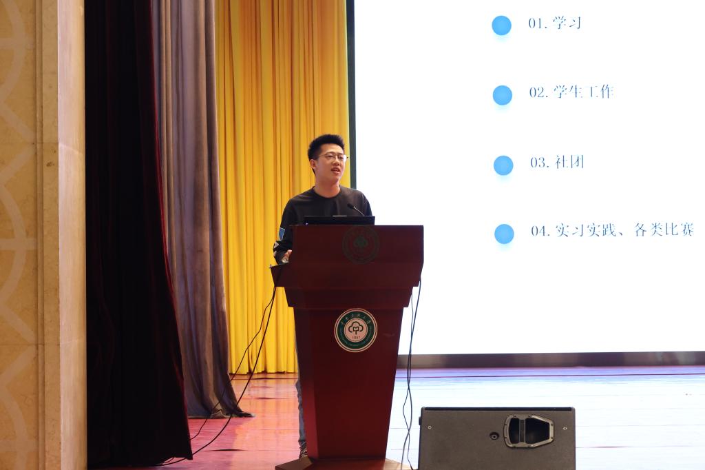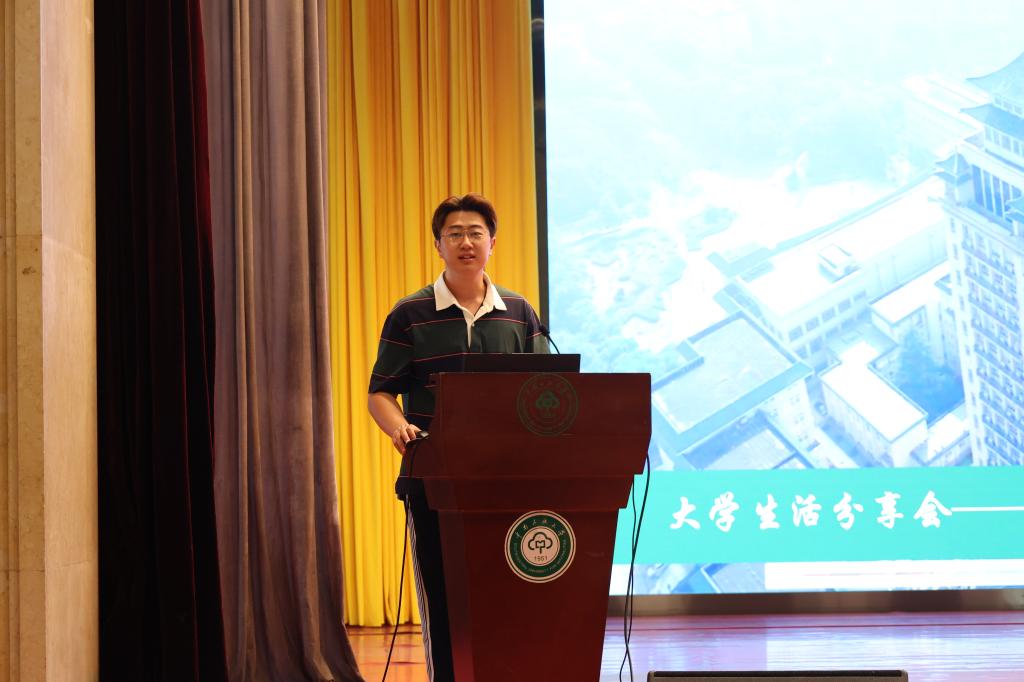 18級尚昊同學進行經驗分享。 中南民大數統學院傳媒中心 攝