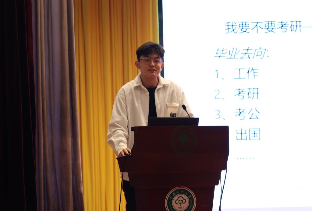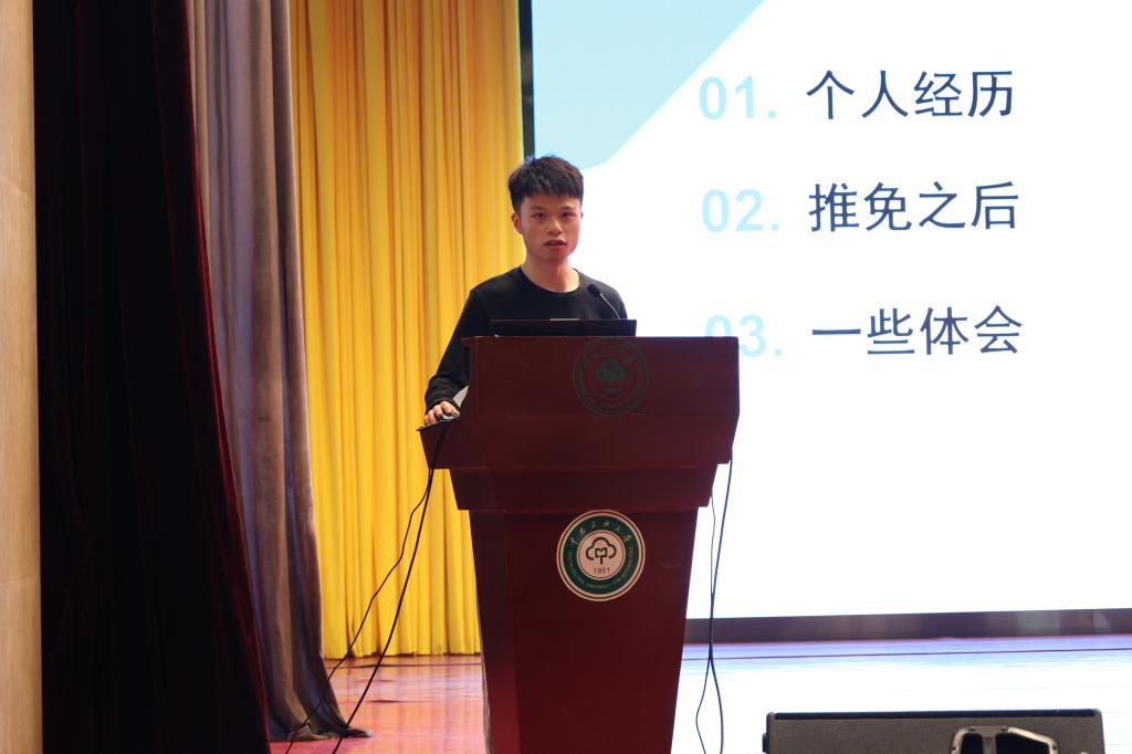 18級胡靖東同學進行經驗分享。 中南民大數統學院傳媒中心 攝