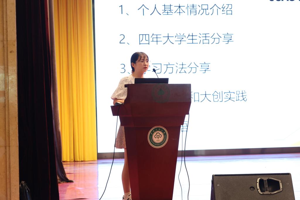 18級劉嘉寶同學進行經驗分享。 中南民大數統學院傳媒中心 攝