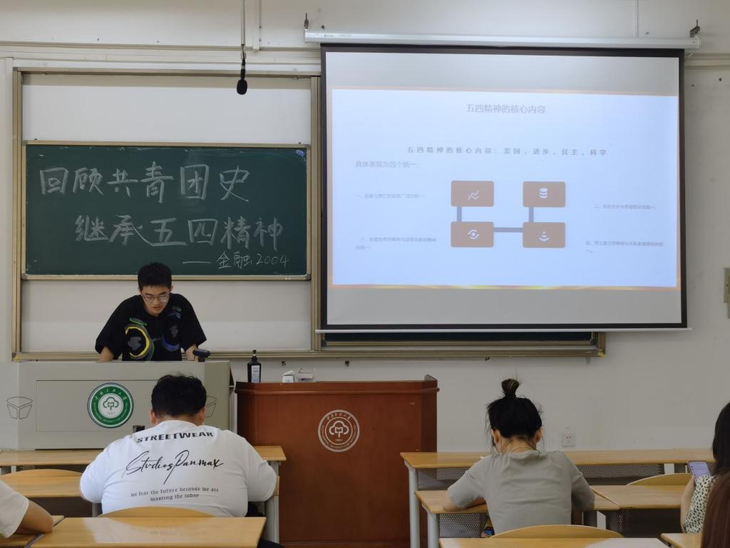 班團會上,同學們集中學習了習近平總書記在慶祝中國共產主義青年團成立100周年大會上重要講話的重大意義、深刻內涵和重要要求,系統地學習了共青團的性質、指導思想、章程等基礎知識,組織開展了團史知識競答、優秀共青團員先進事跡分享等活動,圍繞重要講話精神和團組織的建設發展交流了學習體會。此外,各團支部還結合學生發展實際情況,設計籌備了具有針對性的話題討論環節。比如,經統1901班的同學們與班導師探討了當代青年團員如何把人生理想與社會價值相結合,加深了對團員責任感和新時代青年先進性的認識;金工2003班組織同學們通過互動提問和心得分享等方式學習團的光輝歷史,使同學們充分認識到新時代青年的新使命;經濟學類2116班團支部帶領同學們思考成為一名合格共青團員應具備的精神品質,并對團員如何發揮先鋒模范作用展開討論。