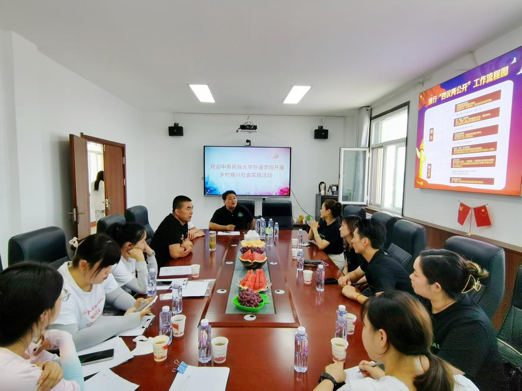 李洋是外語學院2014屆畢業生,作為外語學院杰出校友代表,現任銀川市金鳳區園林村駐村第一書記。座談會上,園林村黨支部、支委首先對外語學院的到訪表示熱烈歡迎,其次園林村黨委書記趙福平對李洋駐村以來的工作給予了極大的贊揚,隨后詳細地介紹了園林村目前的整體情況和鄉村振興實效。