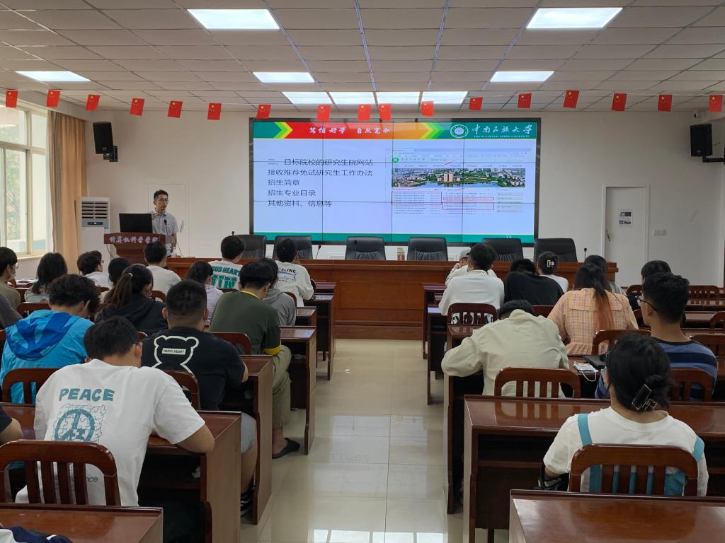 考研預(yù)報(bào)名9月24日正式開始,為了更好的幫助與指導(dǎo)考研學(xué)子順利報(bào)名,解答學(xué)生在預(yù)報(bào)名過程中的常見問題。2022 年9月23日中午,學(xué)院邀請研究生院招生辦公室的余俊樂老師,在9號樓211進(jìn)行研究生招生政策的宣講,他從疫情下考研形勢的變化、考研院校與專業(yè)的選擇指南、學(xué)會檢索有效的考研信息、以及考研常見問題等四個(gè)方面做了詳細(xì)的介紹。他結(jié)合自身的學(xué)習(xí)工作經(jīng)歷,提供了實(shí)用有效的報(bào)考指導(dǎo)策略和建議,在場的考研學(xué)生紛紛表示深受啟發(fā),會結(jié)合自身實(shí)際,更加理性平和地對待接下來的考研報(bào)名。