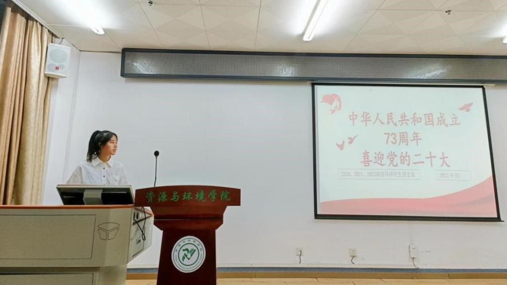 2022級學碩班長趙鑫月同學在主持愛國主義教育主題班會。 資源與環境科學學院 供圖