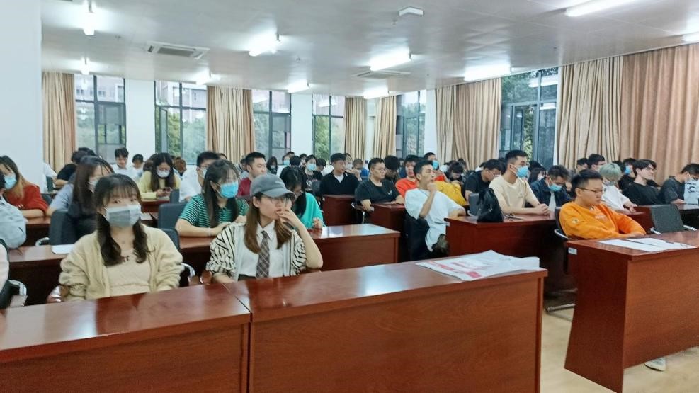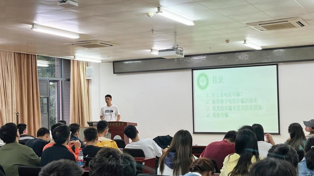 2022級專碩班長李港同學在主持預防電信詐騙主題班會。 資源與環境科學學院 供圖