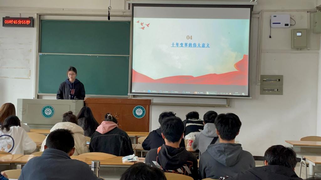 主題班會(huì)以圖片展示、數(shù)據(jù)分析、短視頻等多種形式向同學(xué)們?cè)佻F(xiàn)了十年來我國在經(jīng)濟(jì)建設(shè)、脫貧攻堅(jiān)、文化教育、生態(tài)文明等各方面的進(jìn)步和變化,讓同學(xué)們感受到了黨的十八大以來十年間深耕所獲得的輝煌成就。在自由發(fā)言中,同學(xué)們暢談近十年來發(fā)生在自己身邊的變化:從十年前的舊農(nóng)村面貌談到現(xiàn)如今的新農(nóng)村規(guī)劃;從“綠皮火車”談到高鐵的中國速度;從商場購物談到直播帶貨;從十年前教室上課到如今常態(tài)化疫情防控下的“云”課堂;從“筆”友、“網(wǎng)”友到微博超話、嗶哩嗶哩up主……社交媒體的交友模式日新月異,各大數(shù)據(jù)庫也為我們提供了海量在線學(xué)術(shù)資源,同學(xué)們感受到網(wǎng)絡(luò)與科技的發(fā)展帶來的變化。