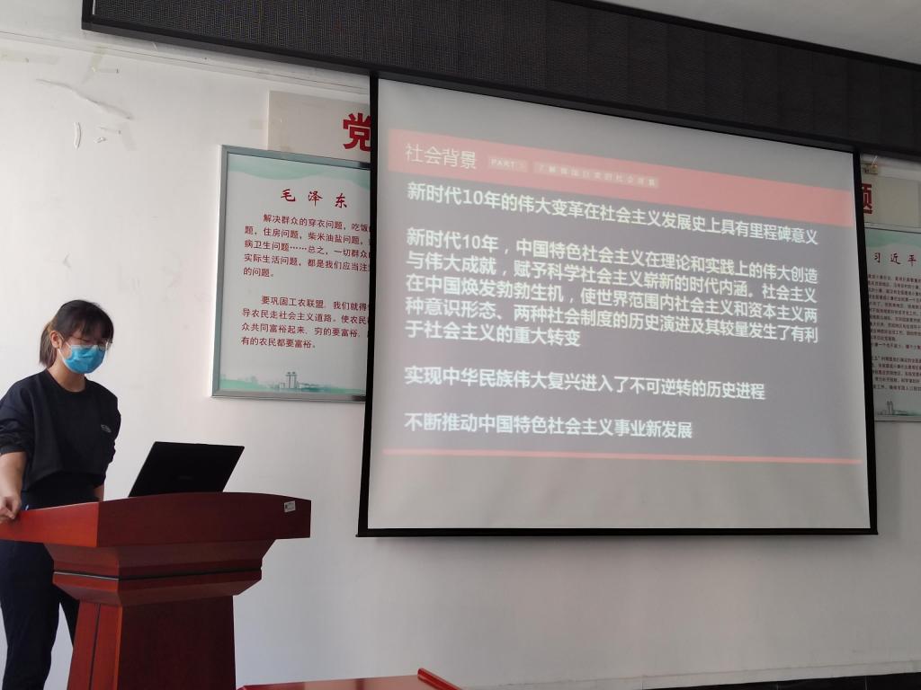 夢想不會自動成真,奮斗才是橋梁;目標不會自動抵達,奔跑才有遠方!為慶祝中華人民共和國成立73周年,喜迎中國共產黨第二十次全國代表大會的召開,教育學院各班組織開展“我看十年變化”的愛國主題班團會,通過回顧黨的十八大以來的奮進征程故事,展現黨和人民的十年奮斗成就,引導學生真心感悟中國共產黨全心全意為人民服務的宗旨,把“聽黨話、跟黨走”從思想認同轉化為行動自覺,擔起時代新人的重任。