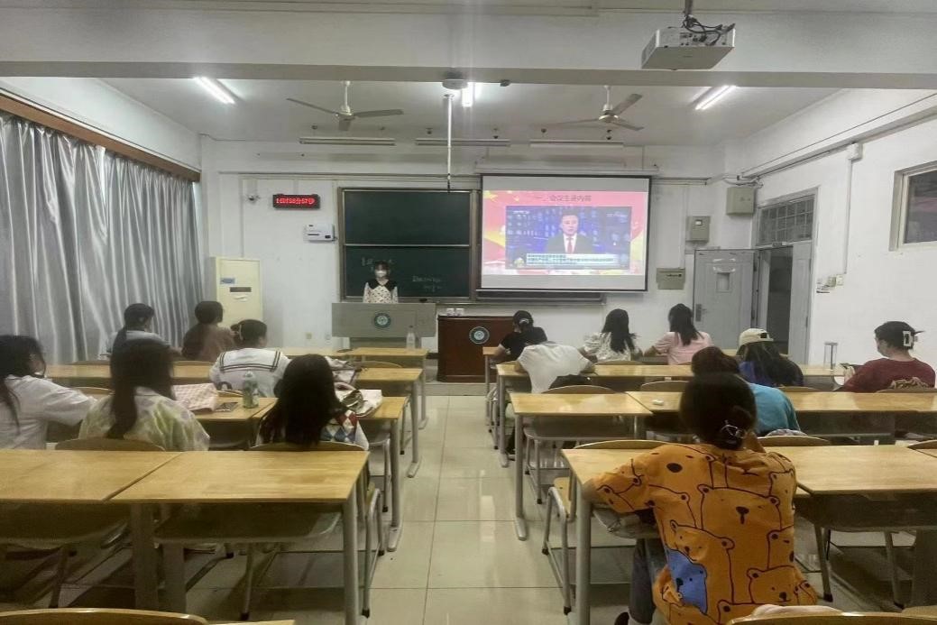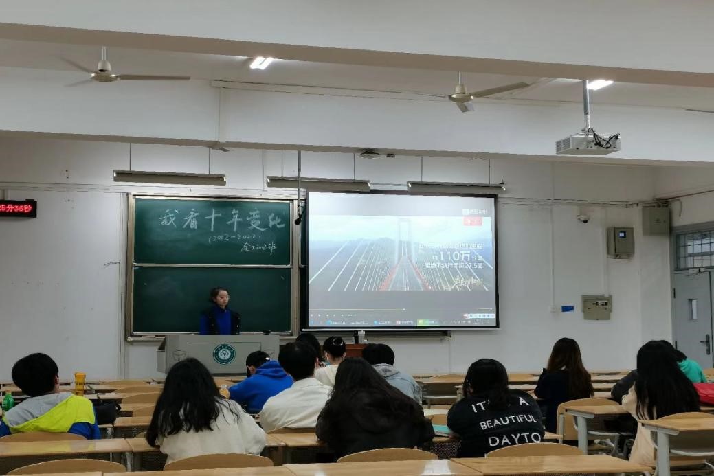 班團會上,各班深入學習習近平新時代中國特色社會主義思想,結合先進模范事跡探討了黨和人民奮進歷程及愛國主義的時代內涵,回顧并交流了新時代十年偉大變革在中華民族發展史上的里程碑意義,圍繞如何弘揚愛國主義精神、做奮發向上的時代青年進行感想分享。此外,各班還結合實際情況,設計籌備了形式多樣的班團會環節:金工1901班組織同學們結合學習貫徹習近平新時代中國特色社會主義思想從多維度暢談感想,思考新時代新青年的使命擔當;經濟試點2001班通過組織觀看主題相關視頻,感受國家發展歷程和當代人物風采;經統2101班開展主題知識競賽問答,幫助同學們牢固掌握黨的基本理論知識;經濟學類2210班圍繞航空航天、體育發展、基礎建設等多方面成就進行詳細講解,引發了同學們的熱烈討論。