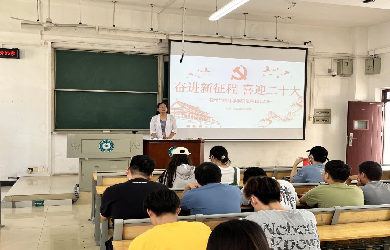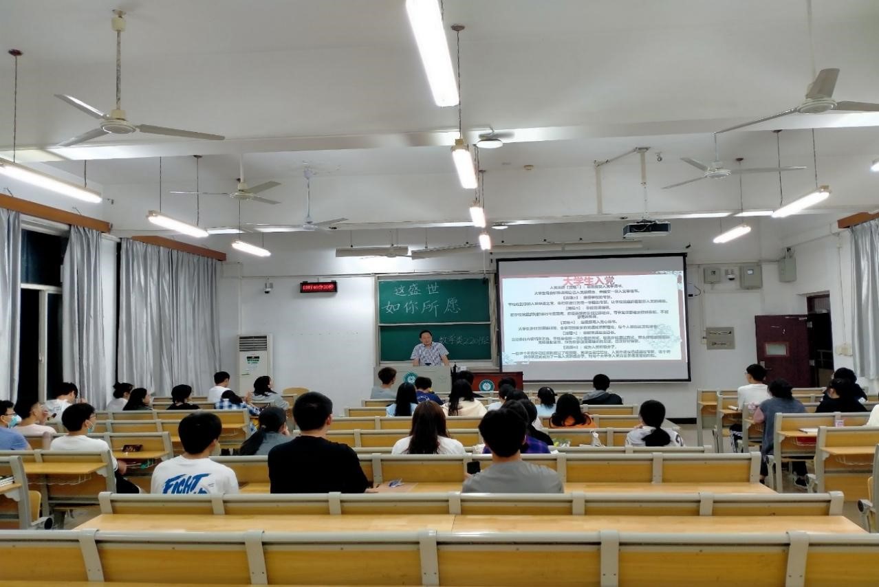 數學類2201班班導師胡軍浩教授介紹入黨流程。 數學與統計學學院 供圖
