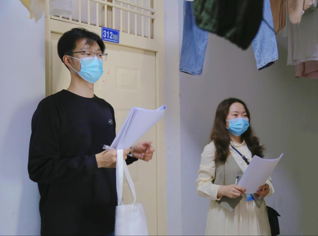 2020級輔導員卡迪爾旦依次敲開10棟各寢室的房門,細細檢查房間里的各路電線和插板,并叮囑男生們:“要注意身體,少熬夜,早上不要賴床,多運動。”2021級輔導員樊曉陽邊檢查邊提醒學生不要賴床,保持良好的生活作息才能確保高效的學習狀態。
