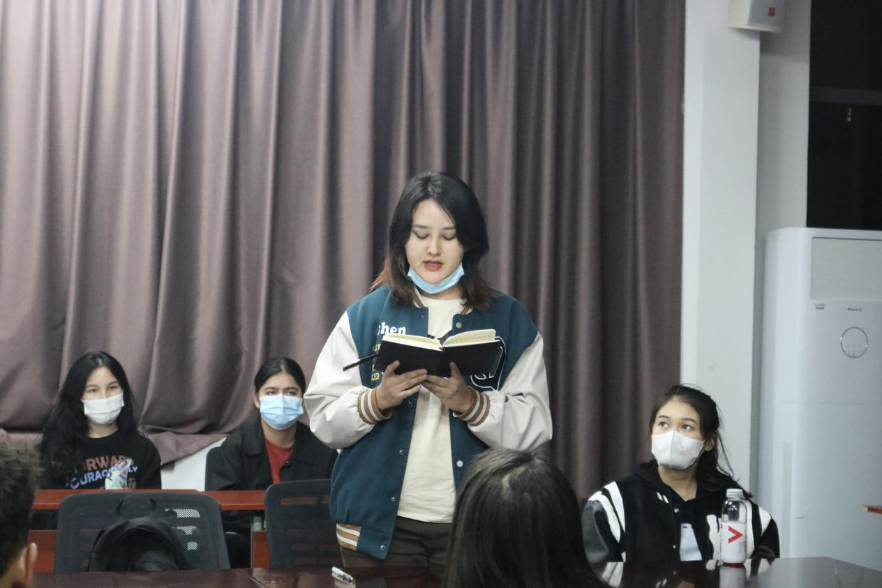 艾克拜爾·買買提依明分享了自己在中南民族大學的求學經歷,鼓勵大家要認真學習領會黨的二十大報告精神,立足新時代新征程,堅定不移聽黨話、跟黨走,踔厲奮發,努力學習,全面提升綜合能力,立志做有理想、敢擔當、能吃苦、肯奮斗的新時代好青年。