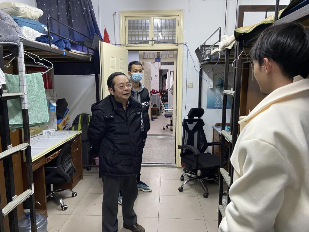 體育學(xué)院領(lǐng)導(dǎo)老師走訪宿舍。 饒麗婭 攝