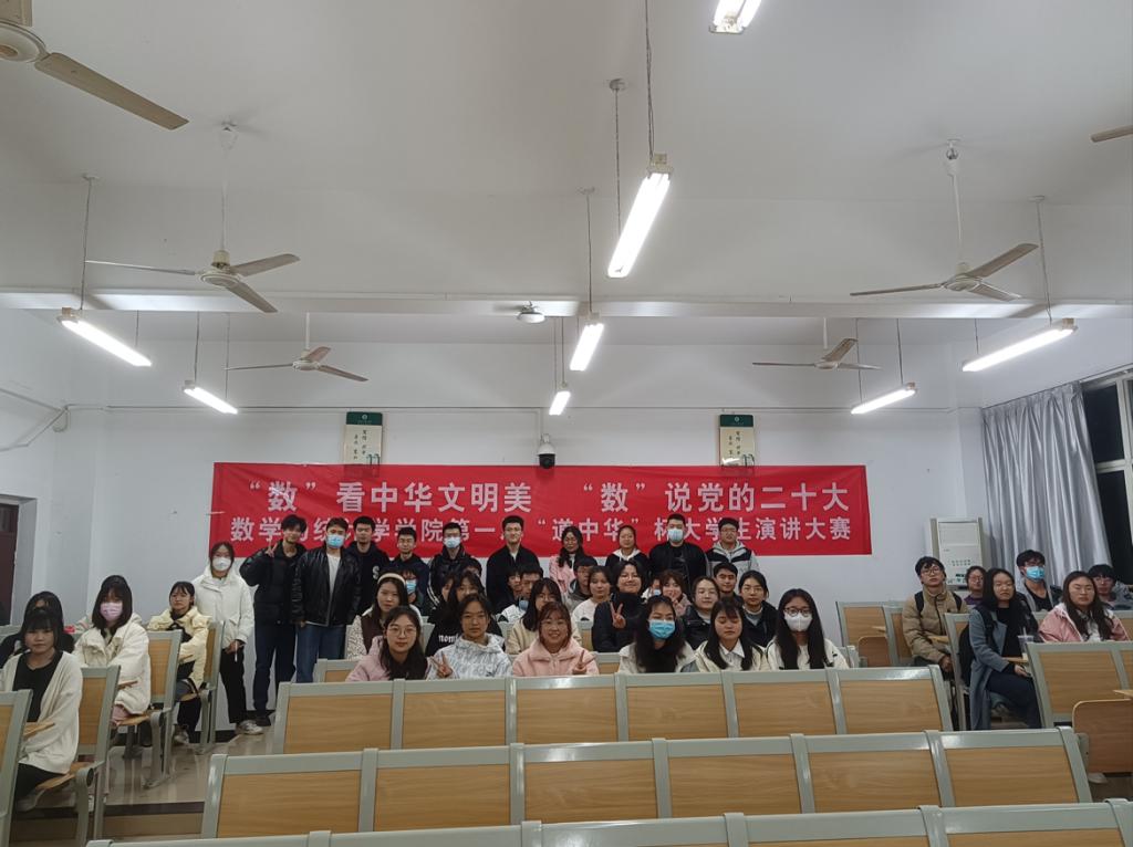 3月21日晚,數學與統計學學院于11棟209教室成功舉辦了“數”看中華文明美,“數”說黨的二十大,數學與統計學學院第一屆“道中華”杯大學生演講大賽。現場特邀請學院學工辦主任、2020級輔導員張帆,2022級輔導員、2202班班導師馬加駿,學院主席團成員唐雙株、羅歡、冀佳瑩、王凱、趙文琦、唐天昊擔任評委。