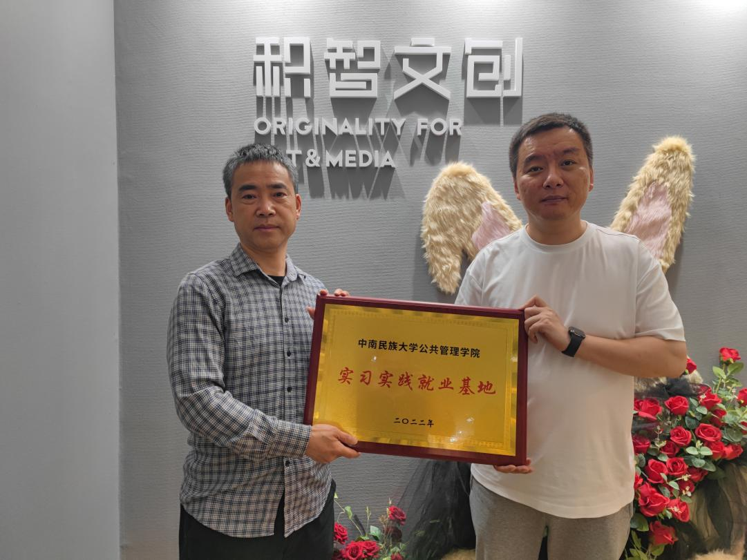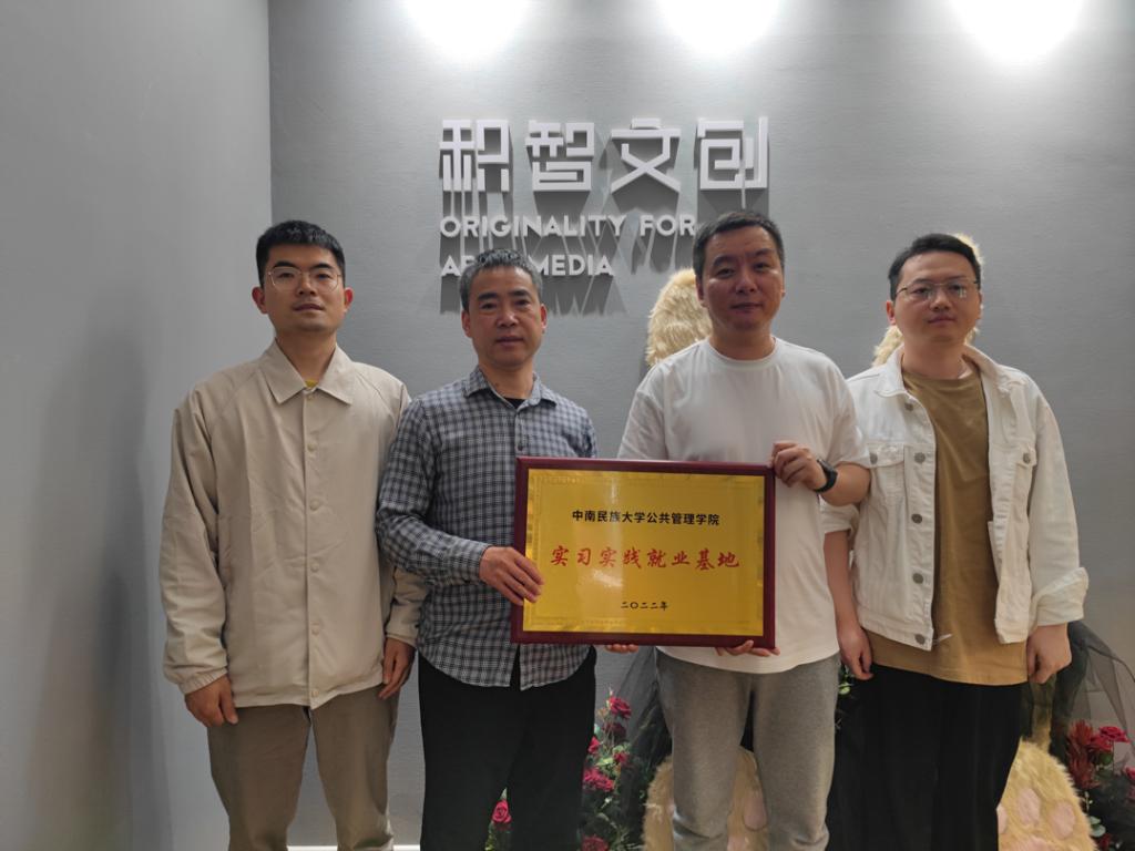 最后陳昌華書記代表公共管理學院為武漢積智文創傳媒有限公司授予“實習實踐就業基地”銘牌。
