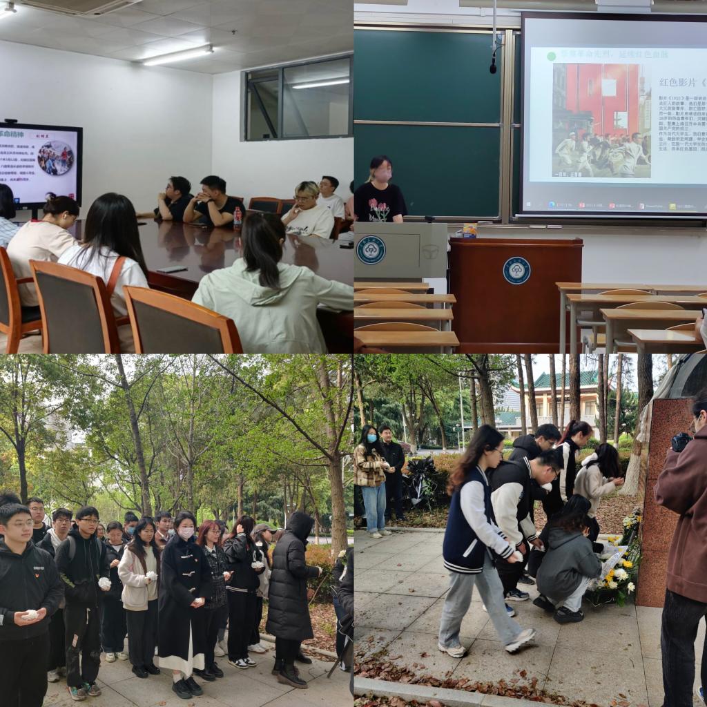 逝者如斯,英烈永存。清明節,我們獻上鮮花,向為國捐軀的先烈們致以最崇高的敬意,青山葬忠魂,清明寄哀思,他們活在家人的思念中,也活在民族的記憶里。環科2001班讓同學們學習了邱少云、董存瑞、劉胡蘭等革命先烈的英雄故事和革命精神;水文2001班團支書為同學們播放了紅色經典主題作品《1921》,在劇情中去感知“革命理想高于天”的堅定信仰,緬懷“敢教日月換新天”的英雄先烈,勞苦大眾的吶喊、戰爭場面的殘酷、神州大地的滿目瘡痍讓同學們濕潤了眼眶;環工2002班在老師的帶領下開展了清明緬懷吳澤霖先生活動,同學們在紀念碑前進行了簡潔而有意義的活動儀式,全體成員在紀念碑前默哀三十秒表示對英雄的崇敬與緬懷之意。同時,向同學們介紹了吳澤霖先生生平事跡,勸勉同學們要感激先輩創造的育人環境,要奮發有為,不辜負先輩期望。