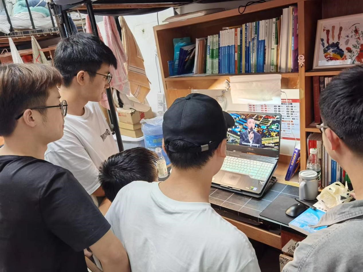 同學們在宿舍收聽收看“團結奮進新時代——第十批全國民族團結進步示范區示范單位授牌活動”特別節目直播。 學生工作部 供圖
