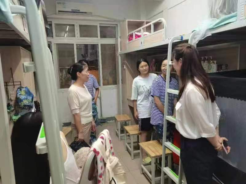 老師們在與同學們交流的同時也檢查了每間寢室的衛生和安全狀況,對電器的使用是否符合規范特別予以關注,并耐心地對存有一定安全隱患的寢室進行了現場糾正與教育。