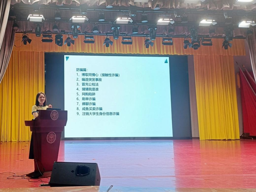 在安全教育方面,王瑩瑩老師通過一系列案例分析,結(jié)合時下高熱度電影《孤注一擲》給新生開展了一場生動的安全教育課,告誡同學(xué)們一定要注意甄別網(wǎng)絡(luò)上的各種信息,切實保障人身財產(chǎn)安全。