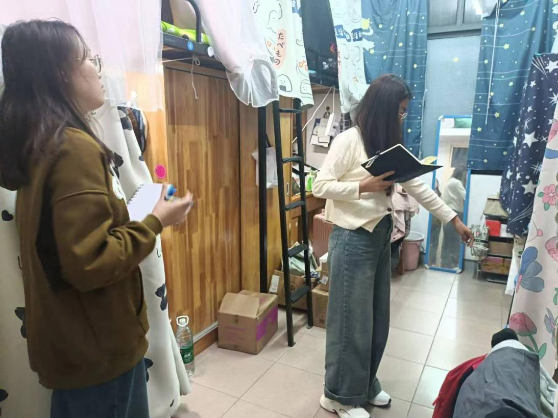 目前學院已開展了三次查寢工作,本次查寢內容包括檢查寢室衛生情況以及是否存在大功率違規電器等。整個查寢過程中各個小組成員對寢室衛生清理、通風情況以及整潔程度做了仔細檢查,并溫馨提醒同學們杜絕使用違規電器,保障用電安全。