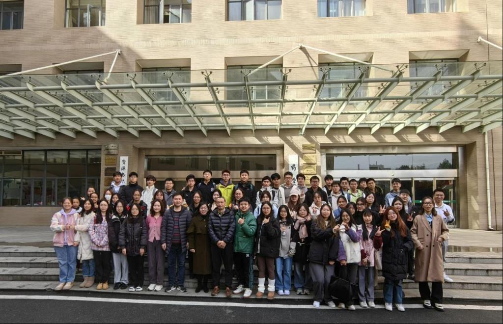 學(xué)院領(lǐng)導(dǎo)老師與團(tuán)委學(xué)生會成員在教學(xué)樓前合照。 黃柱銘 攝