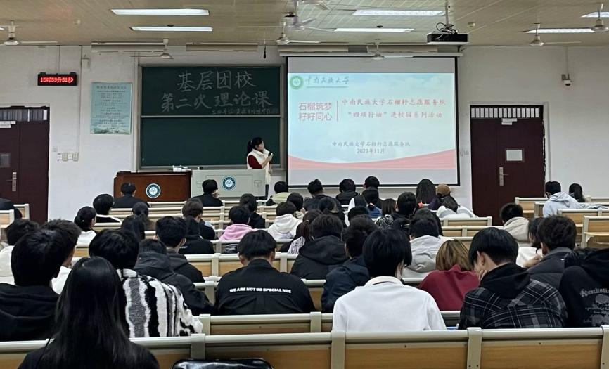 11月21日,資源與環境學院2023-2024學年基層團校理論課第二講于11棟教學樓200教室開講。本次課程由石榴籽志愿服務隊指導老師李然老師主講,院團委副書記王瑩瑩、院團委組織部全體成員及百余名團校學員參加課程。