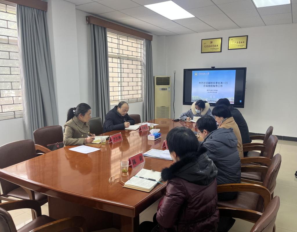 李紅燕認真聽取了與會人員的工作匯報,并針對匯報內容逐一回應。她對數統學院前一階段的工作給予了充分肯定。她指出,面對新一輪的學科專業調整,數學作為基礎學科,對學校的總體發展作出了重要貢獻。她強調,數統學院要以此次學科調整為契機,夯實人才隊伍建設,積極與學校其他兄弟單位溝通交流、協調配合,不斷優化升級學科專業。她表示,希望數統學院在今后的工作中,瞄準主線,堅持系統思維,圍繞學校改革發展的中心事業,持續推動數統學院各項工作高質量發展。