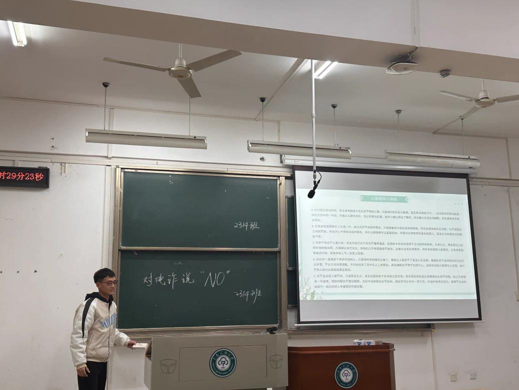 會上,各班學生代表分享了假期見聞和參加寒假社會實踐的經歷。各班班導師按照學院統一要求開展安全教育,提醒同學們要增強健康安全意識,做好個人健康管理,注意防范春季傳染病。班導師再次向同學們介紹了常見的電信詐騙案例,希望大家提高警惕,防范非法校園貸,電信詐騙等金融風險。此外,班導師還提醒同學們,要樹立正確的國家安全、政治安全、信息安全和網絡安全觀念,自覺遵守國家法律法規,維護國家安全和政治穩定。