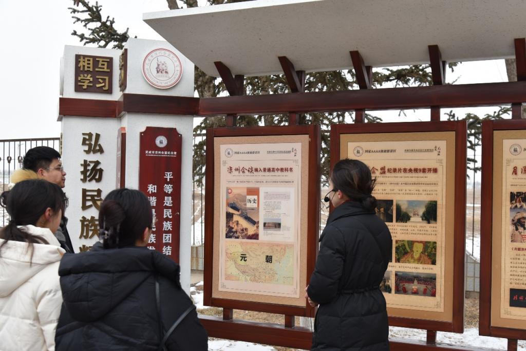 在武威市涼州區,團隊先后前往涼州會盟紀念館、天梯山石窟、武威市博物館、武威市大數據中心、鳩摩羅什寺、五涼文化博物館等地。團隊成員觀察武威如何通過講好“涼州會盟”故事、深挖文物歷史內涵、建設網絡平臺共促民族“三交”,學習當地如何講好民族團結進步故事,做好新征程上鑄牢中華民族共同體意識宣傳教育工作,深刻感知新時代以來鑄牢中華民族共同體意識“武威模式”。