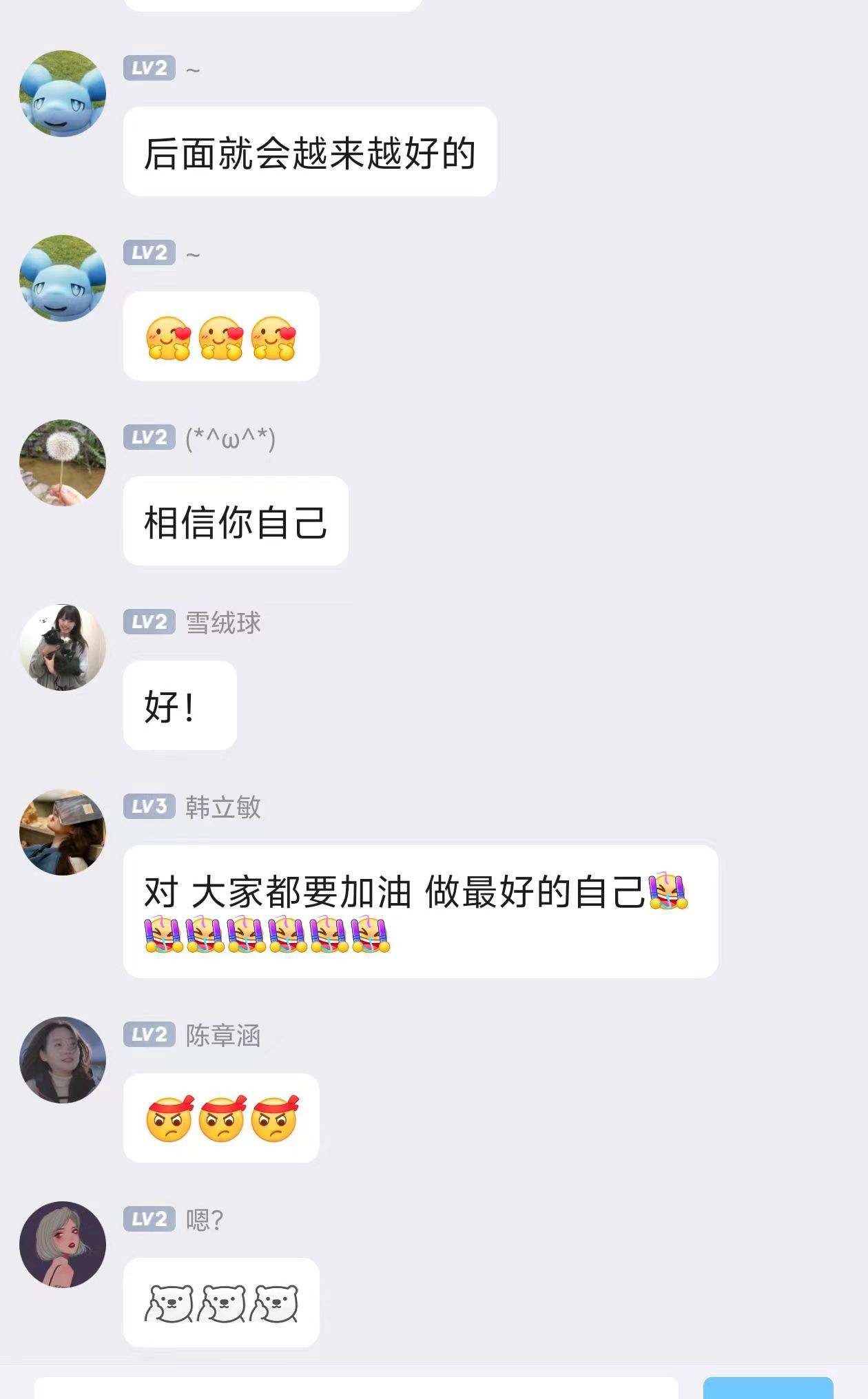 一些同學在交流中感嘆量變過程漫長,過程中遇到各種各樣的阻力,這正是同學們在解決心理問題中最常見、最難以克服的部分。學姐和其他同學積極鼓勵遇到此類問題的同學,并指出,我們在前進的道路上要正視自己,建立自信,要相信努力終有回報!