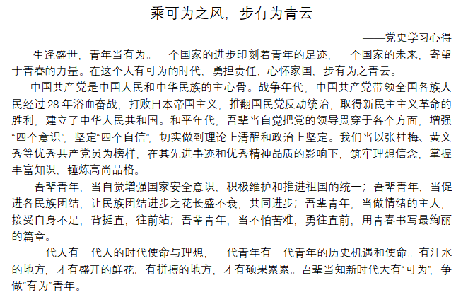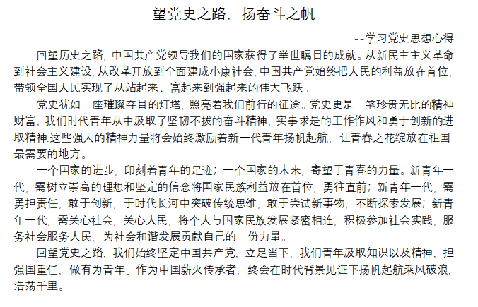 恩格斯說,“歷史就是我們的一切”。深入學(xué)習(xí)黨史、 銘記歷史, 才會(huì)真正地知史愛黨、知史愛國(guó)。此次活動(dòng)不僅加深了對(duì)黨的歷史和祖國(guó)發(fā)展的認(rèn)識(shí),激發(fā)愛國(guó)之情,還進(jìn)一步促進(jìn)同學(xué)們鑄牢中華民族共同體意識(shí),牢固樹立休戚與共、榮辱與共、生死與共、命運(yùn)與共的共同體理念,以更加飽滿的熱情和更加堅(jiān)定的信念,為實(shí)現(xiàn)中華民族的偉大復(fù)興貢獻(xiàn)青春力量!