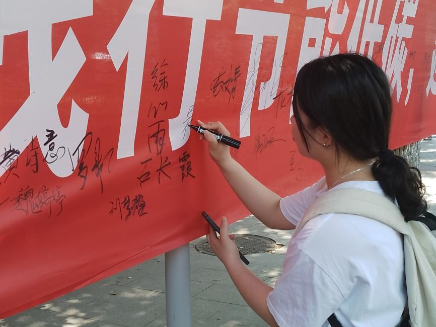 參與者在活動橫幅簽名 資環(huán)青協(xié)攝