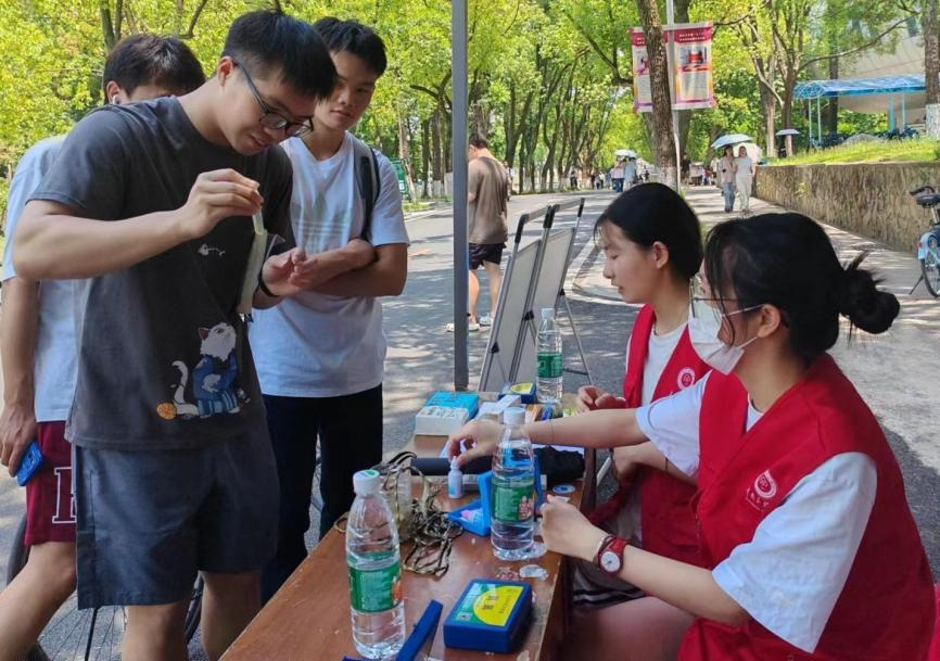 5月17日, 南湖畔清風(fēng)和雨,翠綠喜人,在這美好的日子里,資源與環(huán)境學(xué)院一場別開生面的水質(zhì)調(diào)研與節(jié)能知識科普活動吸引了眾多同學(xué)前來參與。此次擺臺活動中,志愿者們用心策劃活動環(huán)節(jié),通過生動有趣的方式喚醒人們的環(huán)保意識,激發(fā)同學(xué)們的參與熱情。