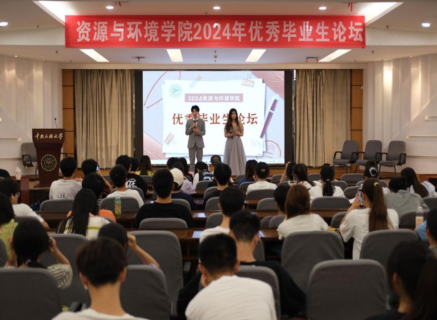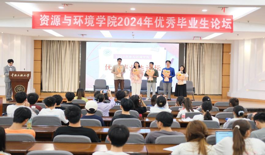 學(xué)習(xí)榜樣精神,汲取奮進(jìn)力量。5月26日晚,資源與環(huán)境學(xué)院在潤良報(bào)告廳舉辦2024屆優(yōu)秀畢業(yè)生論壇。學(xué)院黨委副書記藍(lán)永麗、副院長徐志高、團(tuán)委副書記王瑩瑩、優(yōu)秀畢業(yè)生代表以及各年級學(xué)生代表出席本次論壇。論壇由2023級學(xué)生楊忠泉、耿旗旋主持。