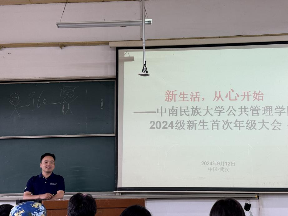師老師首先對2024級全體新生加入中南民族大學公共管理學院大家庭表示了熱烈的歡迎,并對全體新生表達了衷心的祝愿和期待。