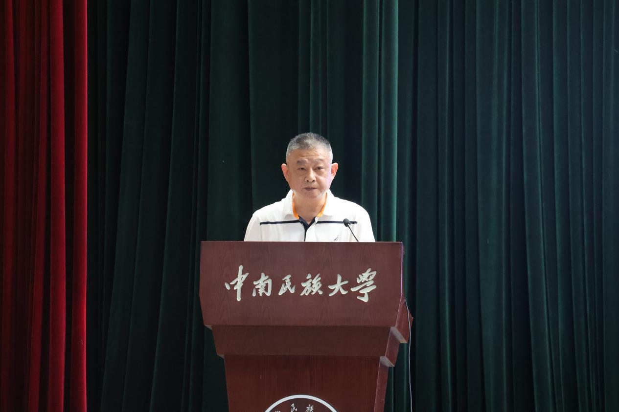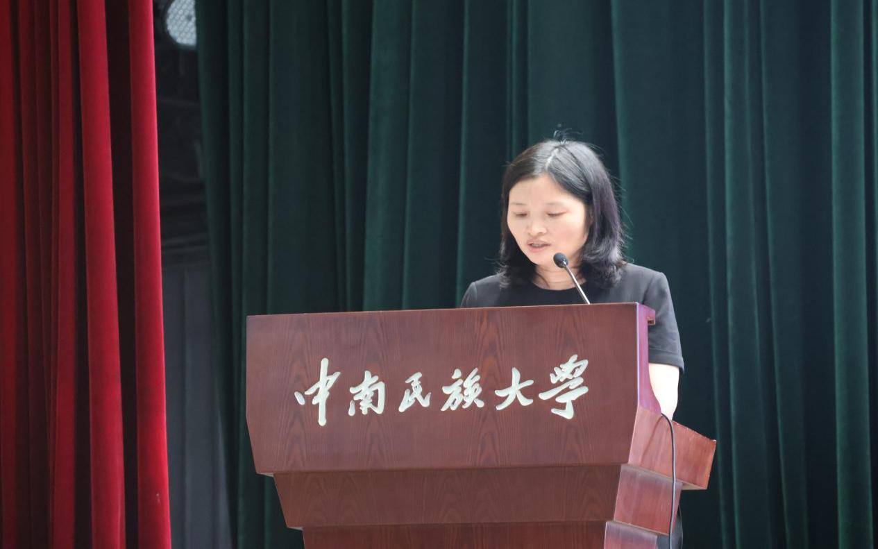 “雙塔高,百花艷,我的校園南湖邊。”開學典禮在師生合唱《中南民族大學校歌》中落幕。