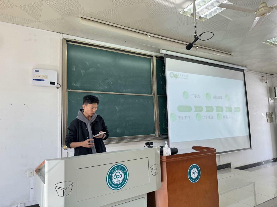 體育部丁文涵向參會的首先介紹了本次運動會以“開展全民健身活動,加快建設體育強國”為宗旨,隨后詳細解讀了運動會的賽程安排、比賽規則及注意事項,接下來,對參賽運動員進行了安全教育,鼓勵各位運動員要堅守誠信比賽、友誼第一、安全第二、比賽第三的原則,并要求團委學生會各部門要互相配合,做好各項后勤保障工作,維護好運動會現場秩序,讓各位運動員們能夠感受團結、友愛。