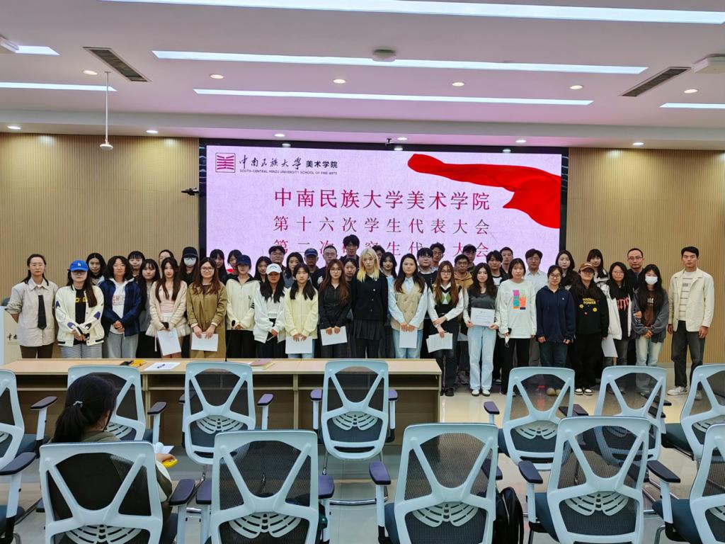 11月8日中午,中南民族大學美術學院第十六次學生代表大會、第二次研究生代表大會在美術館三樓報告廳召開。美術學院黨委副書記聶揚眉、團委副書記朱嘯天、張丁及本科生、研究生學生代表參加會議。