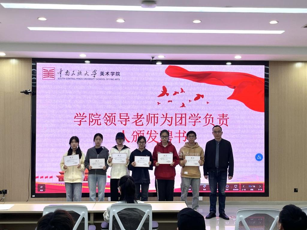 美術學院團委副書記張?。ㄓ乙唬閳F學主要負責人頒發聘書。 郝曉蕊 攝